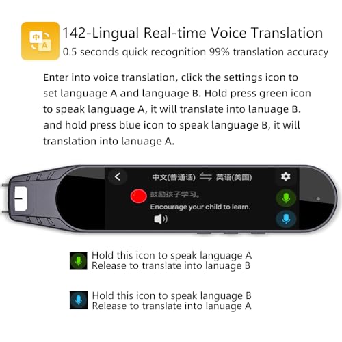 Scanning Translator Pen 142 Languages Offline Translation Portable AI Reading Tool OCR Text to Speech for Dyslexia Learning Difficulties